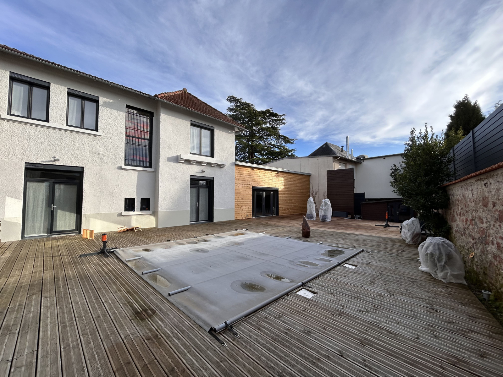 - Grande terrasse en bois (200 m²) avec piscine